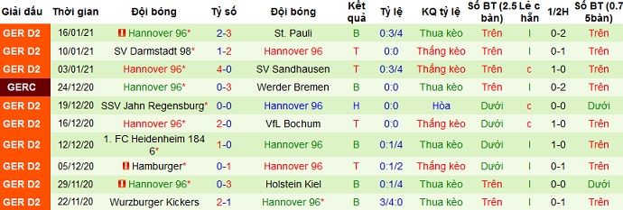 Ở 5 trận gần nhất Hannover có được 2 trận thắng, 1 trận hòa và để thua 2 trận, bao gồm cả trận thua trước Werder Bremen tại cúp quốc gia. Ngay trên sân khách thành tích của Hannover cũng không quá tệ với 2 trận thắng, 1 trận hòa và 2 trận thua trong 5 trận du đấu gần nhất.