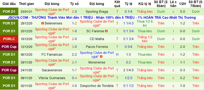- Thông kê 10 trận gần nhất của Sporting Lisbon