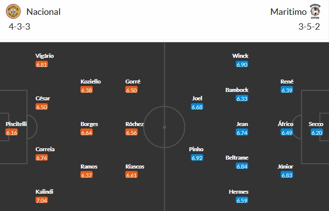 Đội hình dự kiến Nacional vs Marítimo