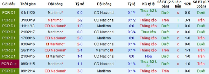 Tỷ lệ kèo Nacional vs Marítimo