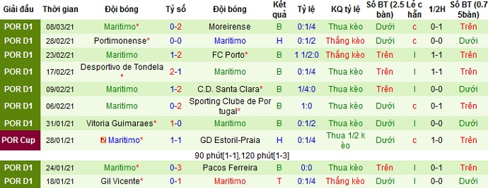 Có điều thành tích của Marítimo là rất tệ khi ở 9 trận gần nhất đội bóng chỉ có nổi 1 trận hòa, để thua ở cả 8 trận còn lại bao gồm cả trận thua tại cúp quốc gia. Thế nhưng trên sân khách Marítimo lại có được 1 trận thắng, 1 trận hòa và 3 trận thua ở 5 lần du đấu gần nhất.