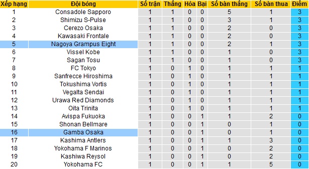 Mặc dù mùa trước Gamba Osaka có thành tích đối đầu tốt hơn so với đối thủ nhưng có lẽ họ đang bị khủng hoảng về mặt tinh thần, trong khi đó Nagoya Grampus vẫn đang duy trì được phong độ ổn định trên sân nhà. Vì thế nên chọn cửa trên ở trận đấu này có lẽ là an toàn hơn cả.
