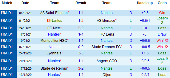 Thời điểm hiện tại cũng không có nhiều hy vọng để chờ đợi vào kết quả tích cực dành cho Nantes khi họ đang thể hiện hình ảnh thực sự thất vọng. Lần gần nhất Nantes giành chiến thắng đã diễn ra từ tháng 11 năm ngoái khi vượt qua đối thủ đồng cân đồng lạng Lorient.