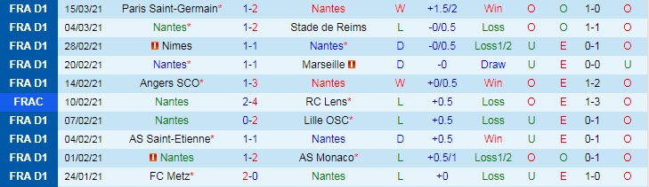 Ở một diễn biến khác, họ cũng chỉ hơn đội xếp sau Nimes (đội bóng xuống hạng trực tiếp) đúng 1 điểm. Đây cũng là khoảng cách của Nantes với đội an toàn Lorient.