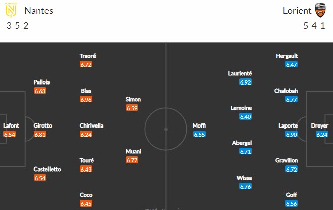 Dự đoán tỷ số Nantes 2-1 Lorient