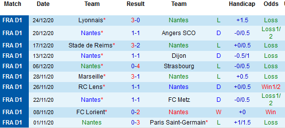 + Thống kê 10 trận gần nhất của Nantes