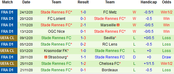 Rennes đã có màn tăng tốc thực sự ấn tượng vào giai đoạn cuối năm thi đấu 2020. Đội khách liên tiếp 4 vòng toàn thắng tại Ligue 1và chỉ để lọt lưới duy nhất 1 bàn.