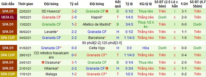 Thành tích gần đây của Granada cũng khá tệ. Trận thắng trước Napoli cũng là trận thắng duy nhất của Granada trong 5 trận gần nhất, còn lại đội bóng hòa 1 và để thua 3. Tuy nhiên thành tích sân khách của Granada cũng không quá tệ với 1 trận thắng, 2 trận hòa và 2 trận thua ở 5 lần du đấu gần nhất.