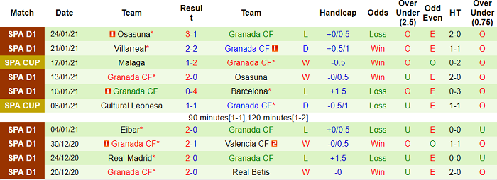 - Thống kê 10 trận gần nhất của Granada
