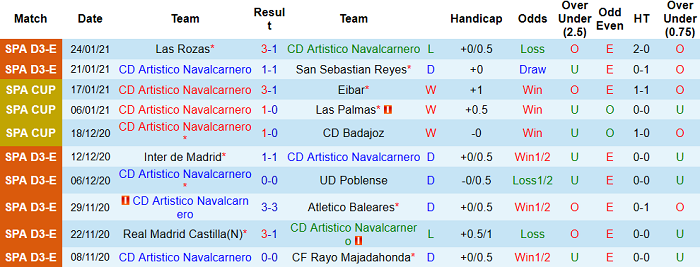- Thống kê 10 trận gần nhất của Navalcarnero