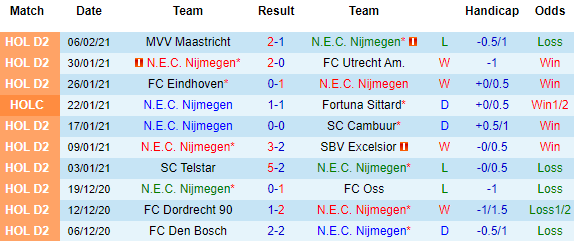 + Thống kê 10 trận gần nhất của NEC Nijmegen