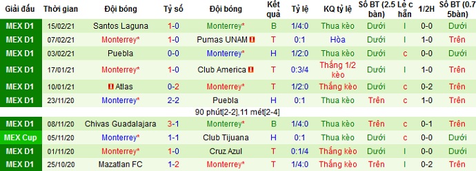 Chuỗi trận 6 bất bại của Monterrey với 4 trận thắng và 2 trận hòa mới đây đã bị cắt đứt khi họ để thua Santos Laguna trên sân đối phương. Thành tích sân khách của đội bóng cũng không thật tốt với 2 trận thắng, 1 trận hòa và 2 trận thua trong 5 lần du đấu gần nhất.