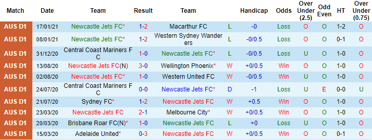 Lần tái đấu sắp tới, Newcastle Jets tiếp tục không mang đến hứa hẹn vào khả năng giành chiến thắng. Thậm chí đội chủ nhà còn đứng trước nguy cơ phải tay trắng rời cuộc chơi. 3 trận liên tiếp vừa qua, Newcastle Jets toàn thua cả về tỷ số và kèo châu Á. Trên sân nhà 2 trận gần nhất họ thua cùng với tỷ số 1-2.