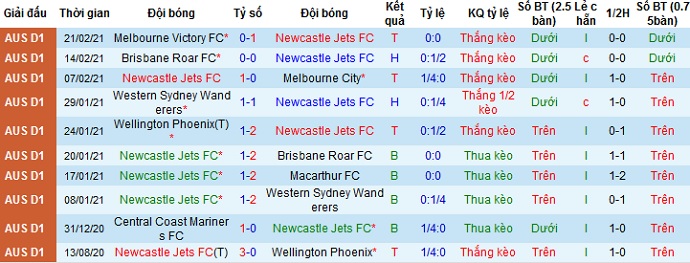 + Thống kê 10 trận gần nhất của Newcastle Jets