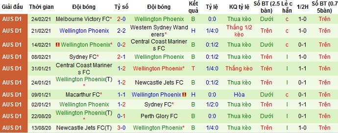 + Thống kê 10 trận gần nhất của Wellington Phoenix