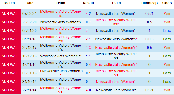 + Lịch sử đối đầu Newcastle Jets (W) vs Melbourne Victory (W)