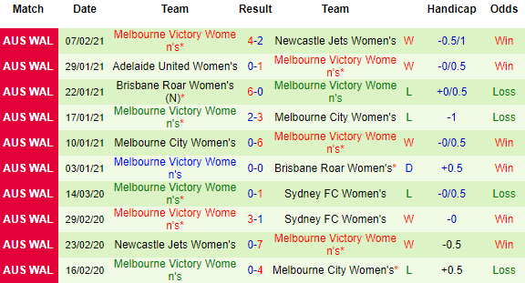 + Thống kê 10 trận gần nhất của Melbourne Victory (W)