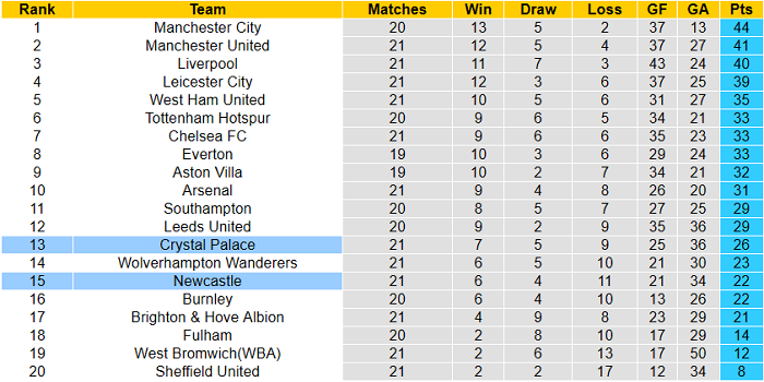 Bàn thắng thường ít xuất hiện ở những màn so tài gần đây giữa Newcastle và Crystal Palace. Cụ thể: cả 4 lần gần nhất Newcastle tiếp đón Crystal Palace thuộc khuôn khổ Ngoại hạng Anh đều chỉ chứng kiến 1 pha lập công. Kịch bản tương tự hứa hẹn tái diễn vào rạng sáng thứ Tư (3/2) theo giờ Việt Nam.