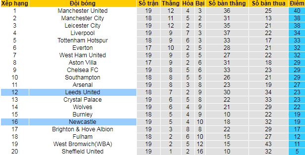 Newcastle mang đến một sự thất vọng vô cùng lớn ở mùa này. Sau 19 lượt trận, Chích chòe chỉ mang về được đúng 19 điểm và tạm thời xép vị trí thứ 16 trên bảng xếp hạng và chỉ cách nhóm cầm đèn đỏ đúng 2 điểm.