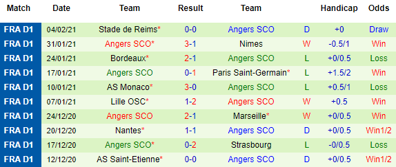 + Thống kê 10 trận gần nhất của Angers