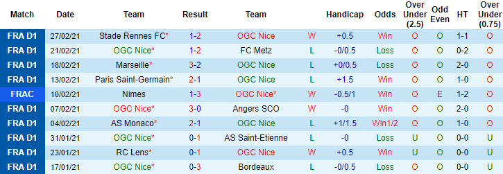 + Thống kê 10 trận gần nhất của Nice