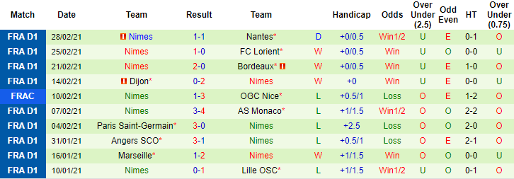 + Thống kê 10 trận gần nhất của Nimes