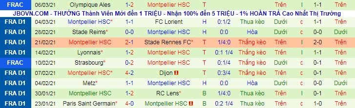 + Soi tỷ lệ kèo tài xỉu: Ghi được tới 44 bàn cho tới thời điểm hiện tại, hàng công của Montpellier đang thi đấu rất ấn tượng so với kì vọng, thành tích ghi bàn của họ thậm chí còn hơn 3 đội bóng xếp trên. Tuy vậy, Montpellier lại rơi vào tình trạng công làm thủ phá khi sau 28 trận đấu, họ cũng đã để lọt lưới tới 47 bàn. Trung bình mỗi 90 phút, đội bóng phải nhận 1,67 bàn thua. Chọn Tài.