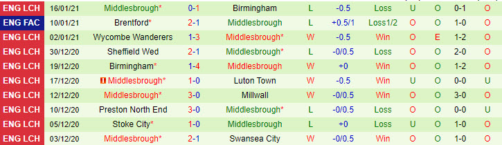 + Thống kê 10 trận gần nhất của Middlesbrough