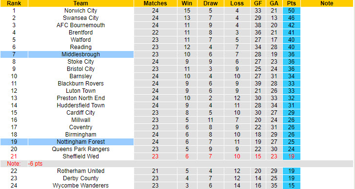 Niềm tin của đội chủ sân The City Ground càng gia tăng khi đối thủ Middlesbrough đang trong cơn khủng hoảng về phong độ. Nên biết, đội khách Middlesbrough vừa để thua tới 3 trong số 4 trận vừa rồi tại mọi đấu trường tham dự.