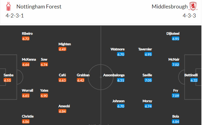 Đội hình dự kiến Nottingham Forest vs Middlesbrough:
