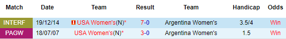 + Lịch sử đối đầu Nữ Mỹ vs Nữ Argentina