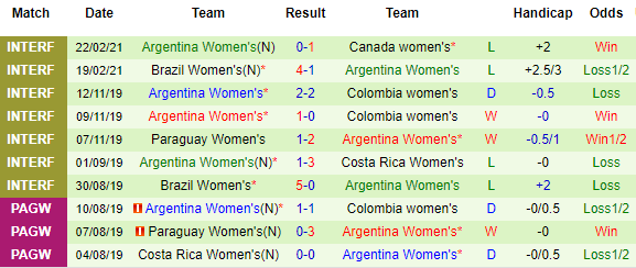 + Thống kê 10 trận gần nhất của Nữ Argentina