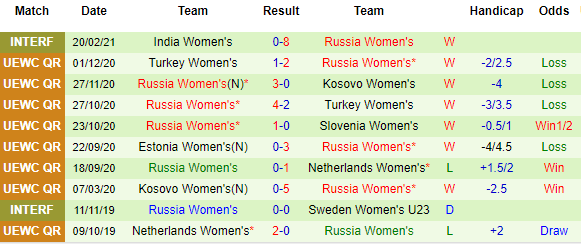 + Thống kê 10 trận gần nhất của Nữ Nga