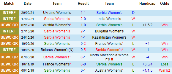 + Thống kê 10 trận gần nhất của Nữ Serbia