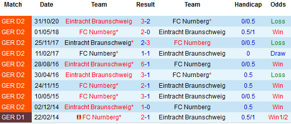 + Lịch sử đối đầu Nurnberg vs Braunschweig