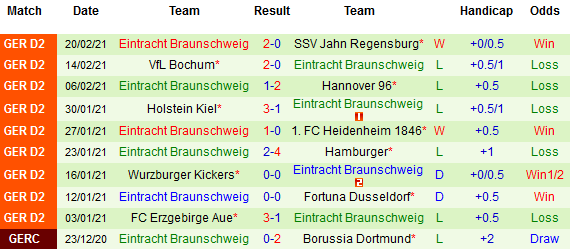 + Thống kê 10 trận gần nhất của Braunschweig
