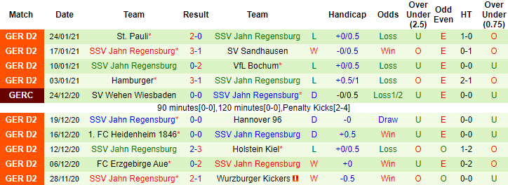 + Thống kê 10 trận gần nhất của Jahn Regensburg