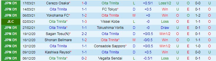 + Thống kê 10 trận gần nhất của Oita Trinita