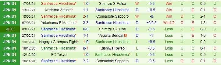+ Thống kê 10 trận gần nhất của Sanfrecce Hiroshima