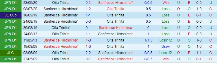 Phong độ và thống kê đối đầu Oita Trinita - Sanfrecce Hiroshima gần đây: