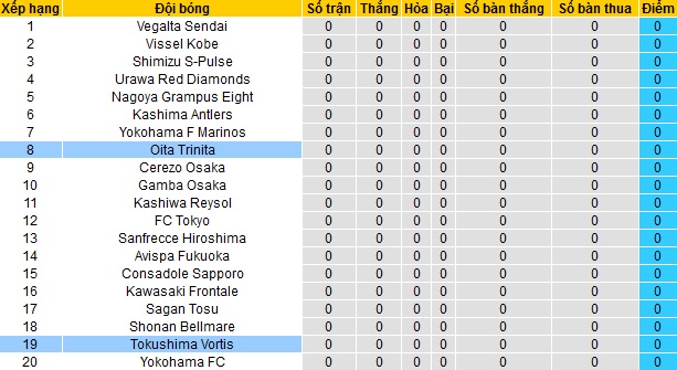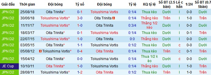 + Lịch sử đối đầu Oita Trinita vs Tokushima Vortis