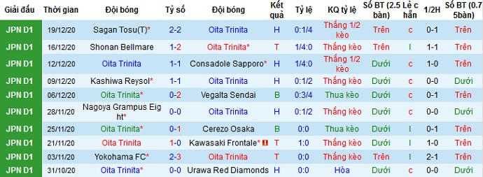 + Thống kê 10 trận gần nhất của Oita Trinita