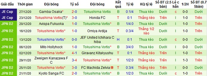 + Thống kê 10 trận gần nhất của Tokushima Vortis