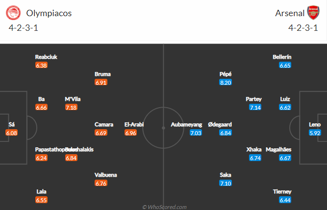 Olympiakos gợi lại nỗi đau của Arsenal tại Europa League mùa trước. Gặp nhau trong khuôn khổ vòng 1/16 Cúp C2 châu Âu 2019/20, Arsenal bị Olympiakos đánh bại với tỷ số 1-2 trong hiệp phụ trận lượt về trên sân Emirates và Pháo thủ bị loại bởi luật bàn thắng sân khách (thắng 1-0 ở lượt đi). Thành tích đối đầu giữa hai đội trong quá khứ ở mức cân bằng: Arsenal thắng 5, Olympiakos thắng 5 trong 10 lần chạm trán nhau tính trên mọi đấu trường.