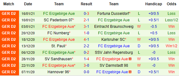 + Thống kê 10 trận gần nhất của Erzgebirge Aue