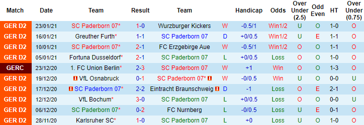 + Thống kê 10 trận gần nhất của Paderborn
