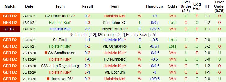 + Thống kê 10 trận gần nhất của Holstein Kiel