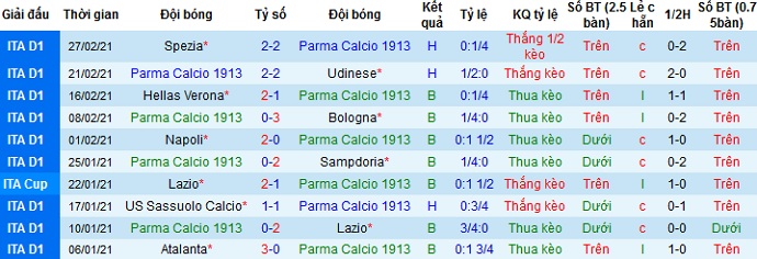 + Soi tỷ lệ kèo châu Á: Với vị thế kém hơn hẳn so với đối thủ đồng thời có phong độ kém cỏi nên Parma cho dù được thi đấu trên sân nhà nhưng vẫn bị đánh giá là đội cửa dưới cũng là điều dễ hiểu. Tuy nhiên kèo chấp đang ở mức rất cao khi lên đến +1,75.