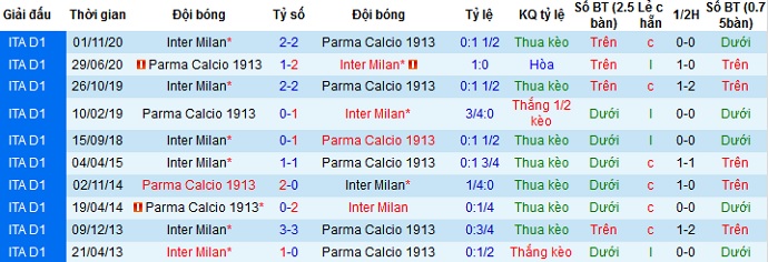+ Lịch sử đối đầu Parma vs Inter Milan