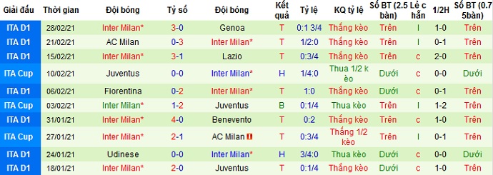 + Thống kê 10 trận gần nhất của Inter Milan